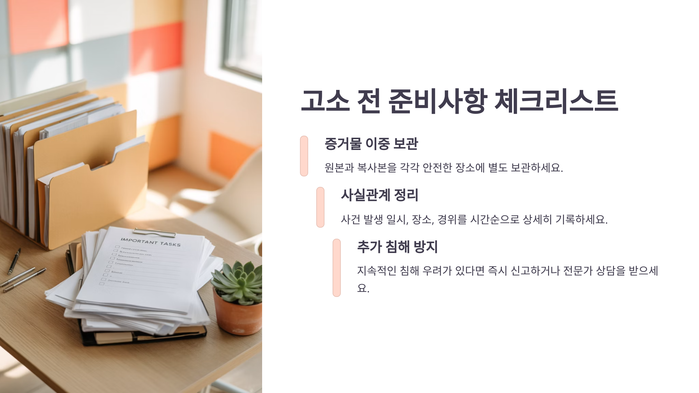 사생활 침해로 고소하기 전에 반드시 확인해야 할 항목들이 있어요. 감정적으로 바로 고소장을 접수하기보다는, 준비를 철저히 해야 원하는 결과를 얻을 수 있어요.