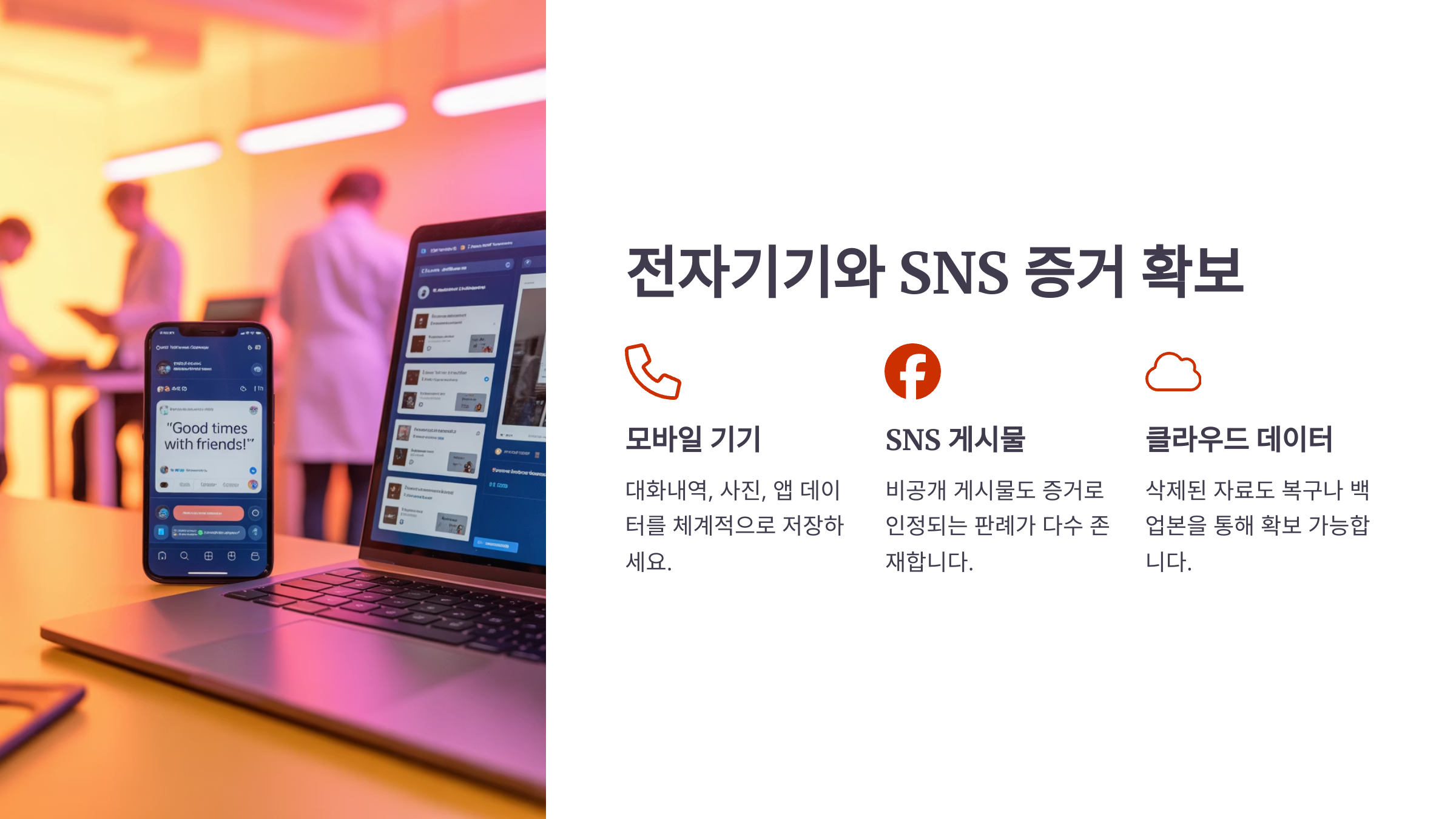 2️⃣ 증거의 정리와 백업이 중요해요. 위에서 이야기한 스크린샷, 녹음, 영상 등은 사건의 사실 여부를 입증할 수 있어야 하며, 파일 원본을 분실하지 않도록 2~3곳에 저장하는 게 안전해요.