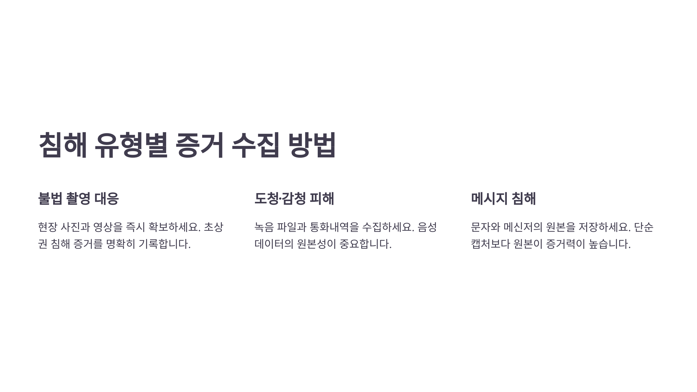 그렇다면 어떤 방식으로 증거를 모아야 하고, 어떤 자료가 법적으로 유효한 걸까요? 이 글에서는 다양한 유형의 사생활 침해에 맞는 증거 수집법과 고소 절차 전반을 자세히 알려드릴게요.